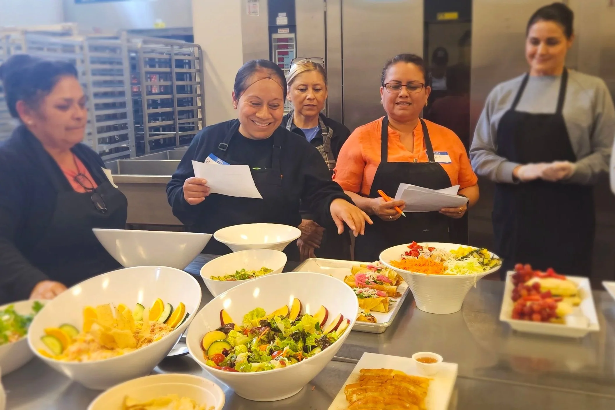 At Sonoma Family Meal, our Culinary Job Training Program follows this model. We provide hands-on training in a working kitchen, where students prepare food-security meals for the community, contribute to our Provisions meal subscription, assist with Catering with a Cause, support cooking classes, and gain front-of-house skills in our lunch pop-up café.